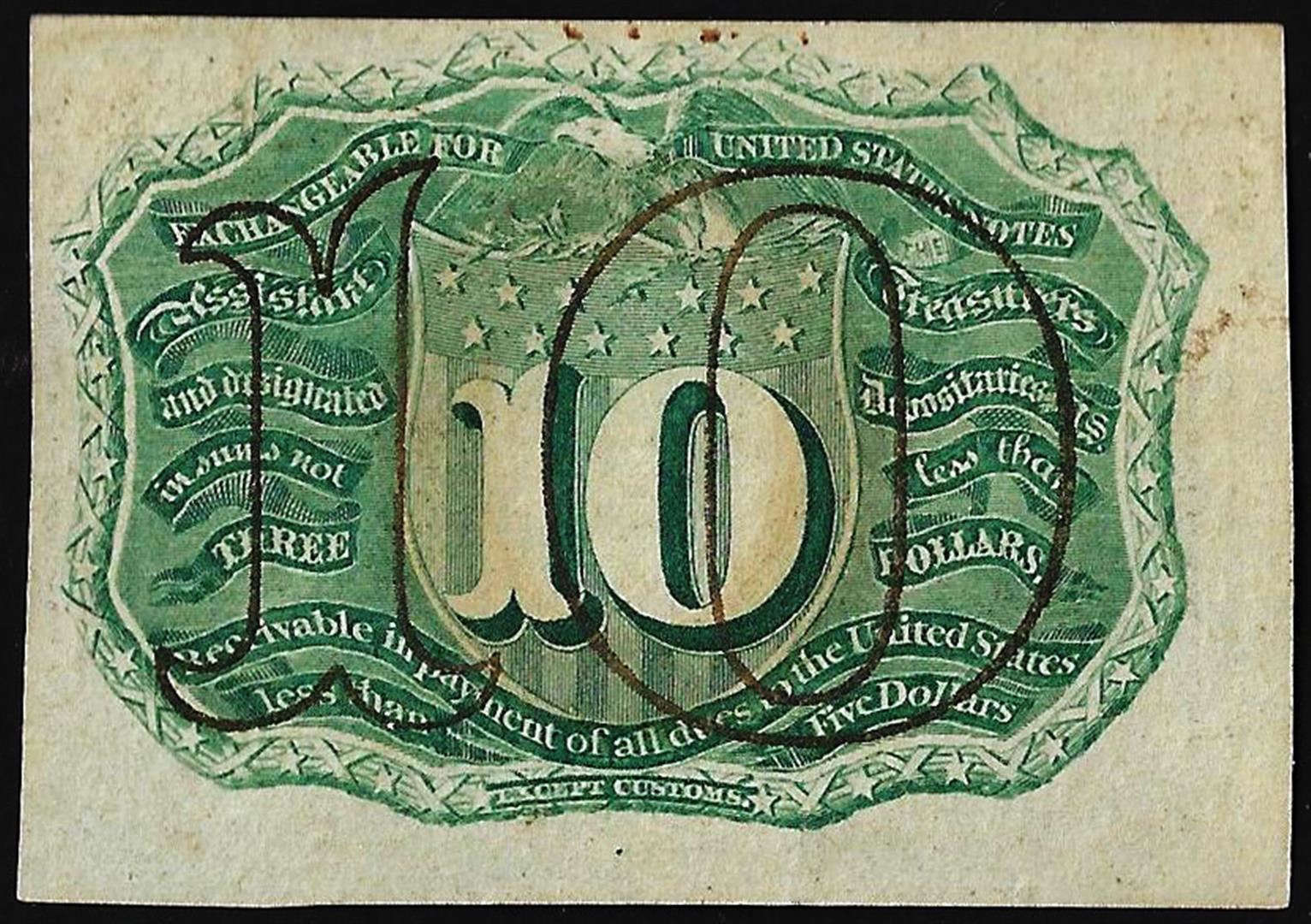 One March 3, 1863 Ten Cents Second Issue Fractional Currency Note.