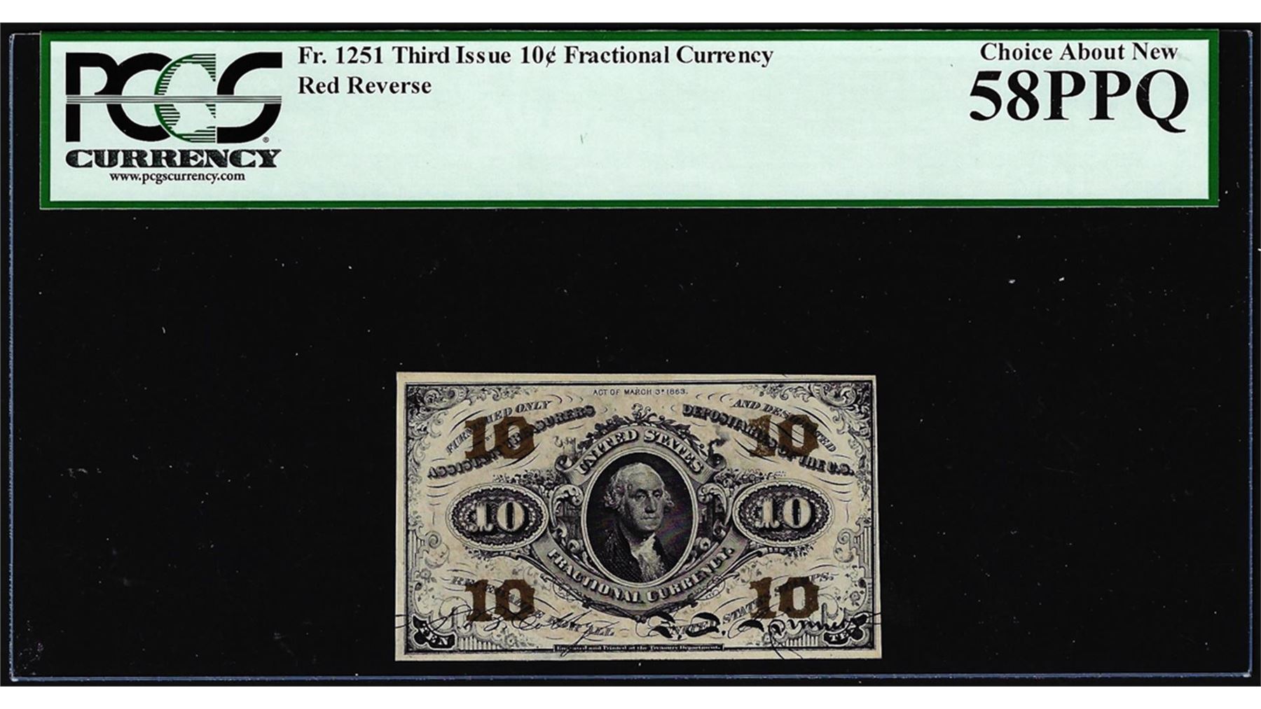 March 3, 1863 Third Issue 3 Cents Fractional Currency Note Fr.1251 PCGS Choice About New 58PPQ