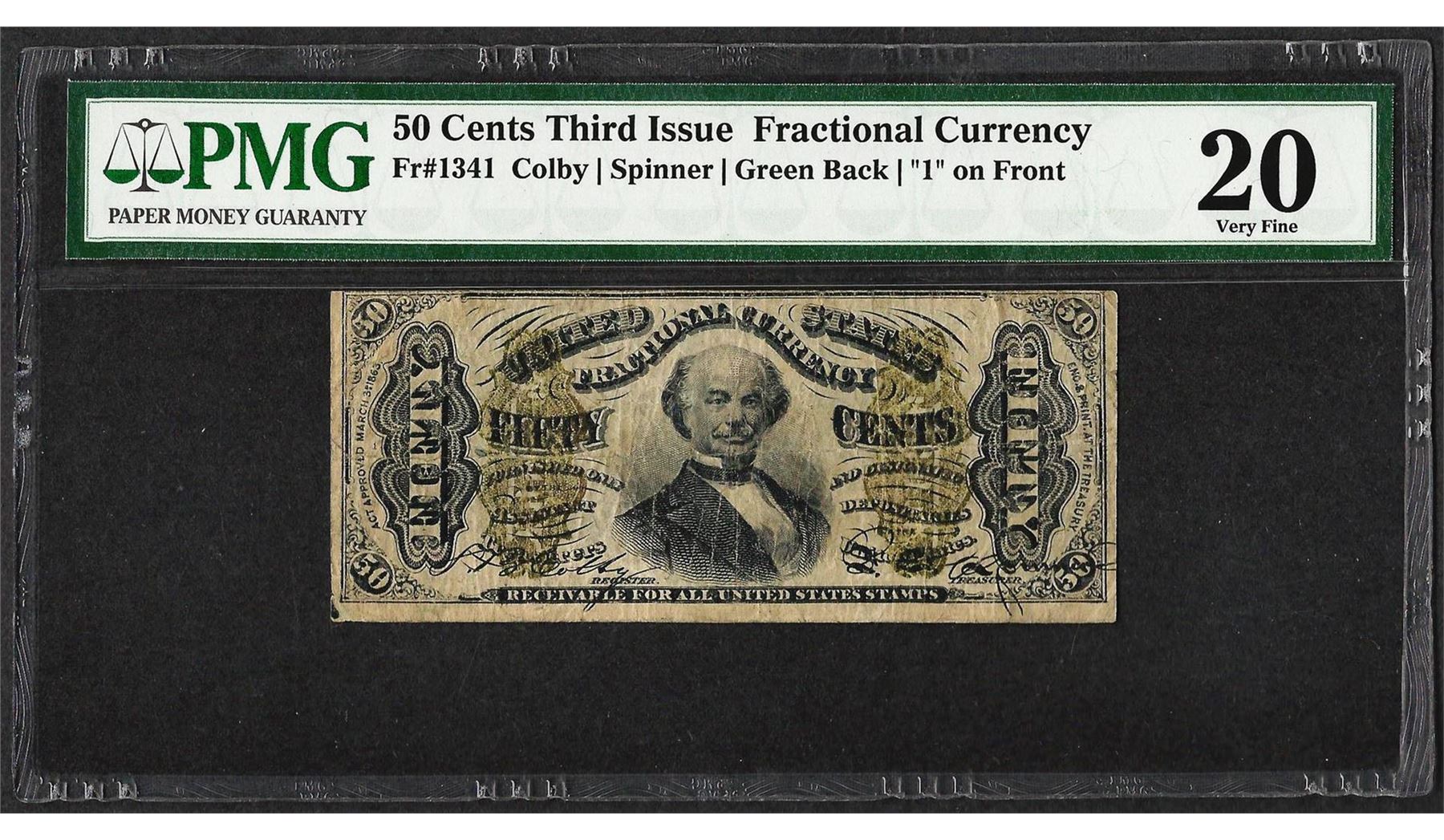 One March 3, 1863 Third Issue 50 Cent Fractional Currency Note PMG Very Fine 20. PMG Certified.