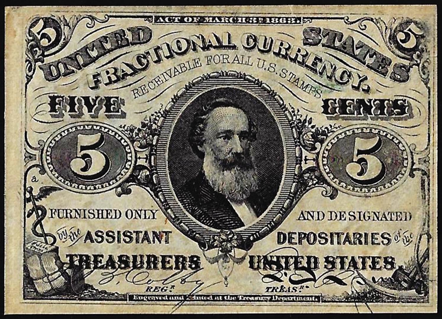 One March 3, 1863 Third Issue Five Cents Fractional Currency Note.