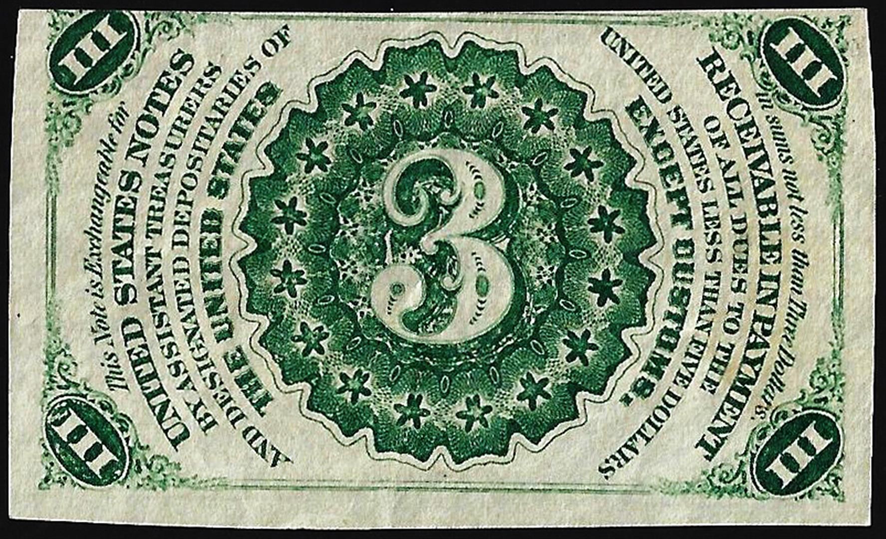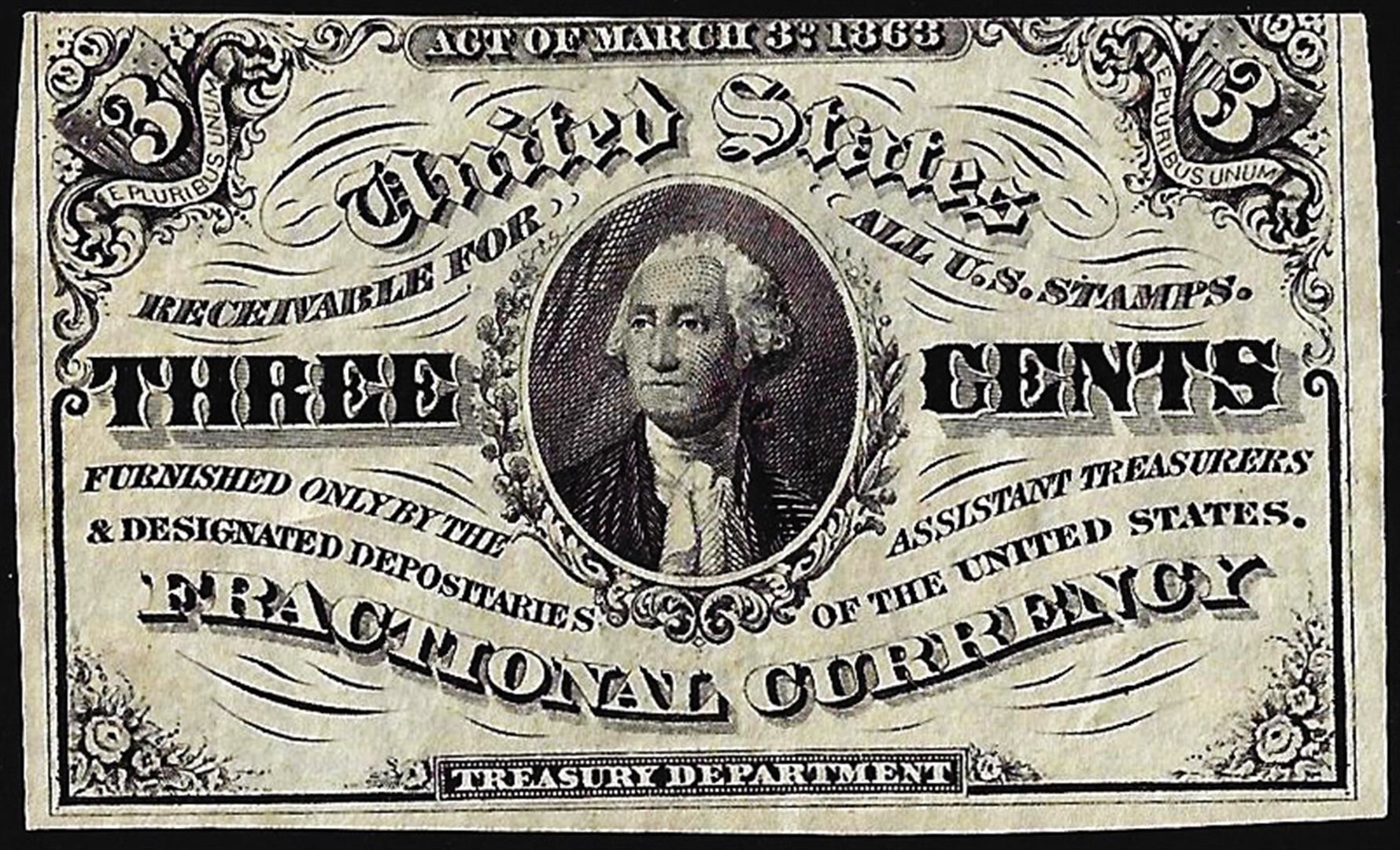 One March 3, 1863 Three Cents Third Issue Fractional Currency Note.