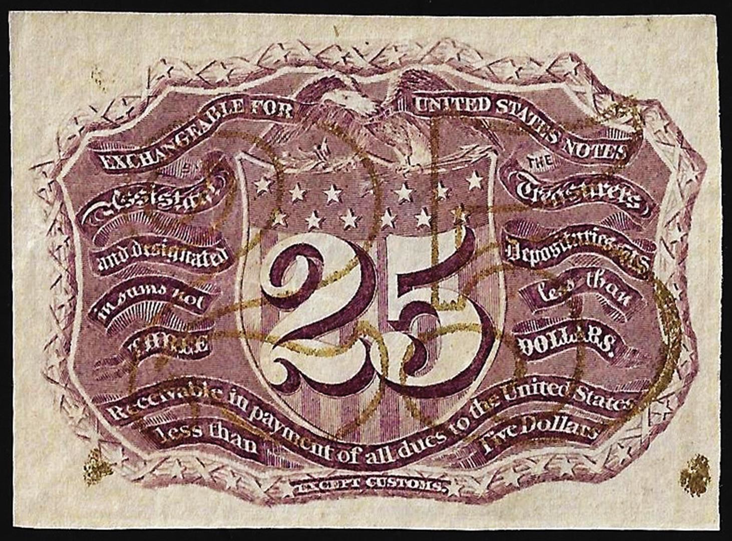 One March 3, 1863 Twenty-Five Cents Second Issue Fractional Currency Note.