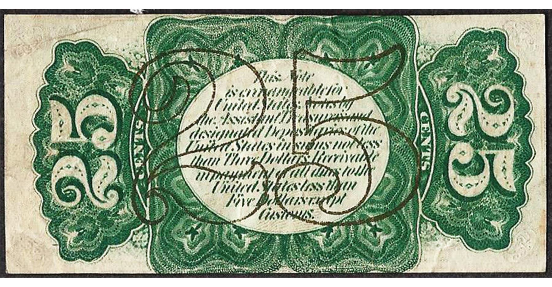 One March 3, 1863 Twenty-Five Cents Third Issue Fractional Currency Note.