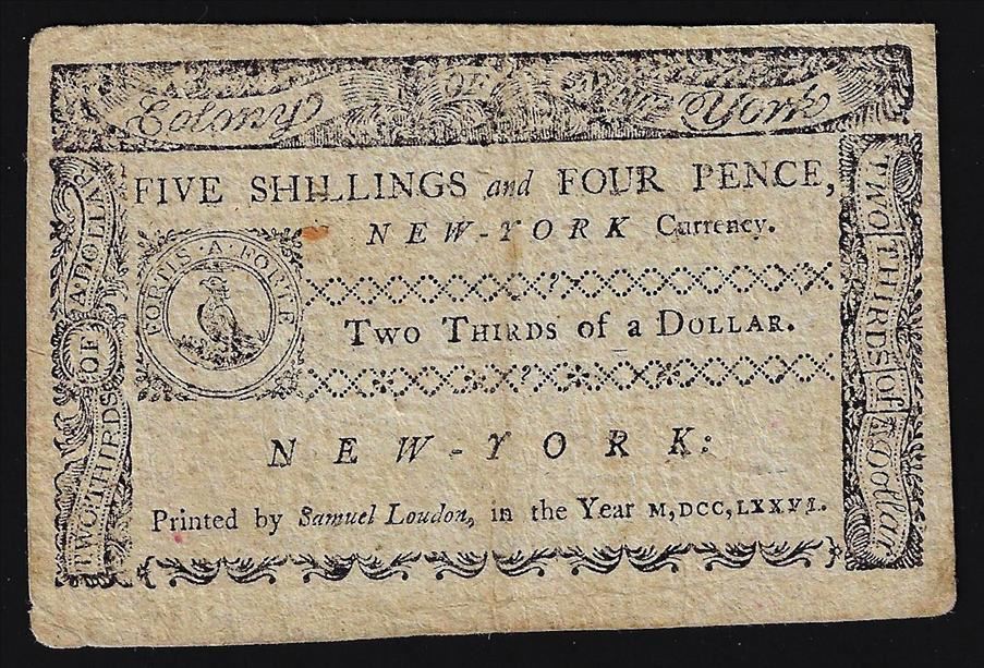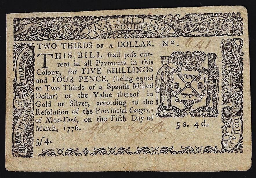 One March 5, 1776 Five Shillings and Four Pence New York Colonial Note.