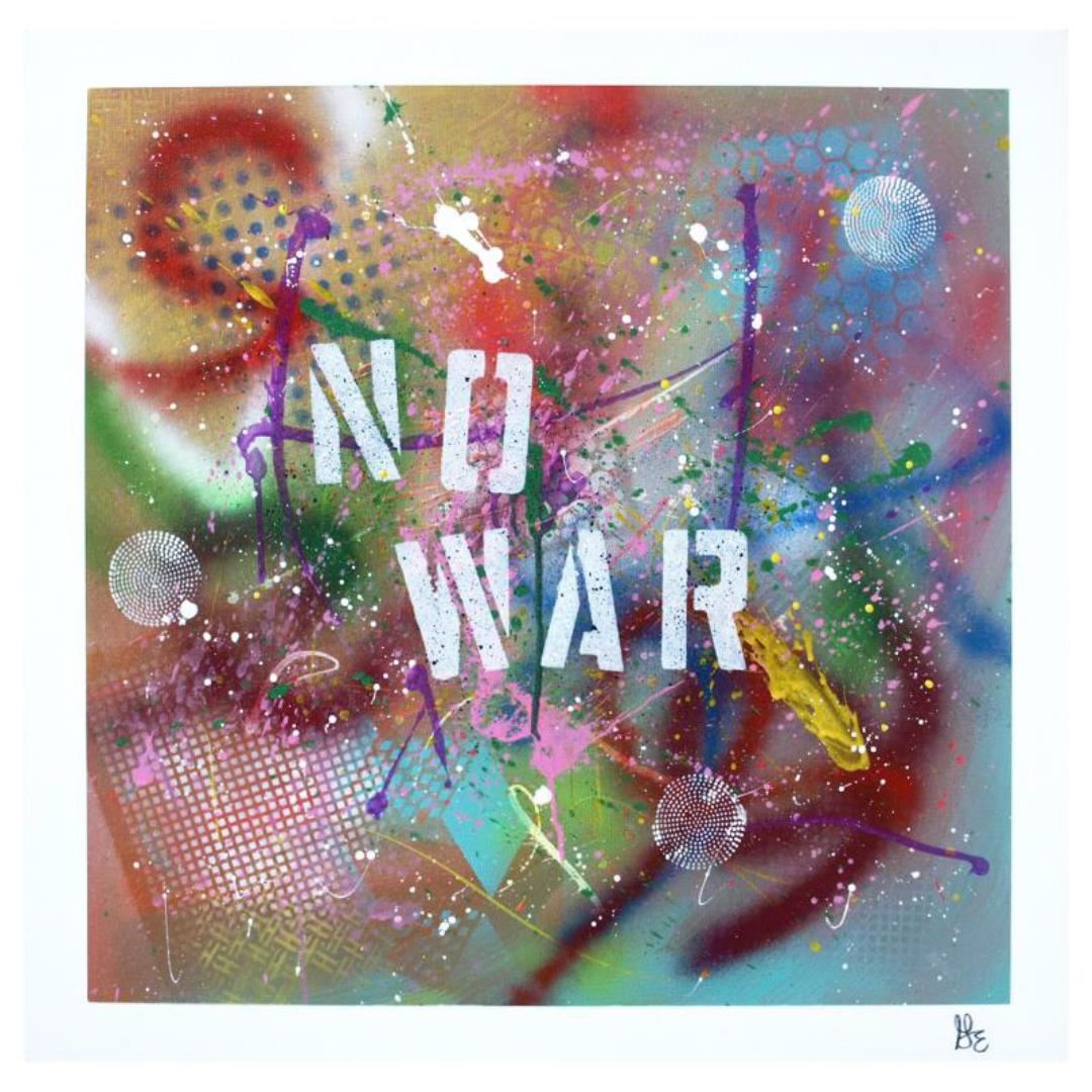 "No War" is an original acrylic painting on canvas by George Marlowe, hand signed by the artist. This piece comes gallery wrapped. Includes Letter of Authenticity. Measures approx. 30" x 30" (image).