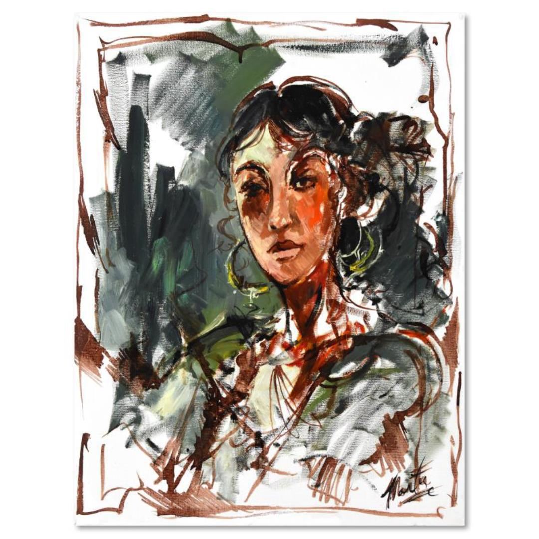 This is an original mixed media painting on stretched canvas by Marta Wiley, hand signed and thumbprinted by the artist. Includes Letter of Authenticity. Measures approx. 16" x 20" (image).