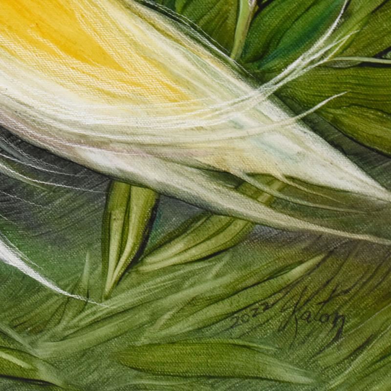 "Bird of Paradise" is an original oil painting on stretched canvas by Martin Katon, hand signed by the artist. Includes Letter of Authenticity. Measures approx. 24" x 30" (image).