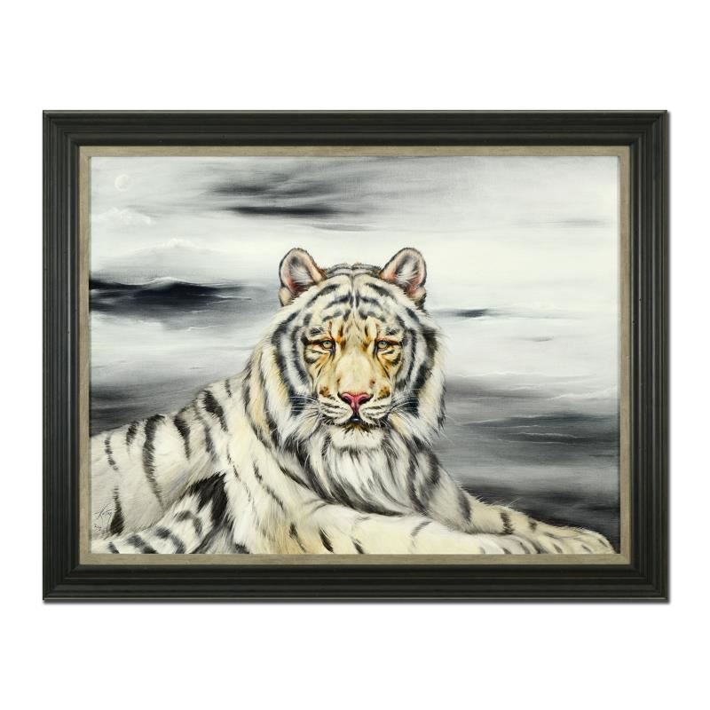 "White Tiger" is an original oil painting on canvas by Martin Katon, hand signed by the artist. This piece comes framed. Includes Letter of Authenticity. Measures approx. 47" x 37" (framed), 39.5" x 29.5" (image).