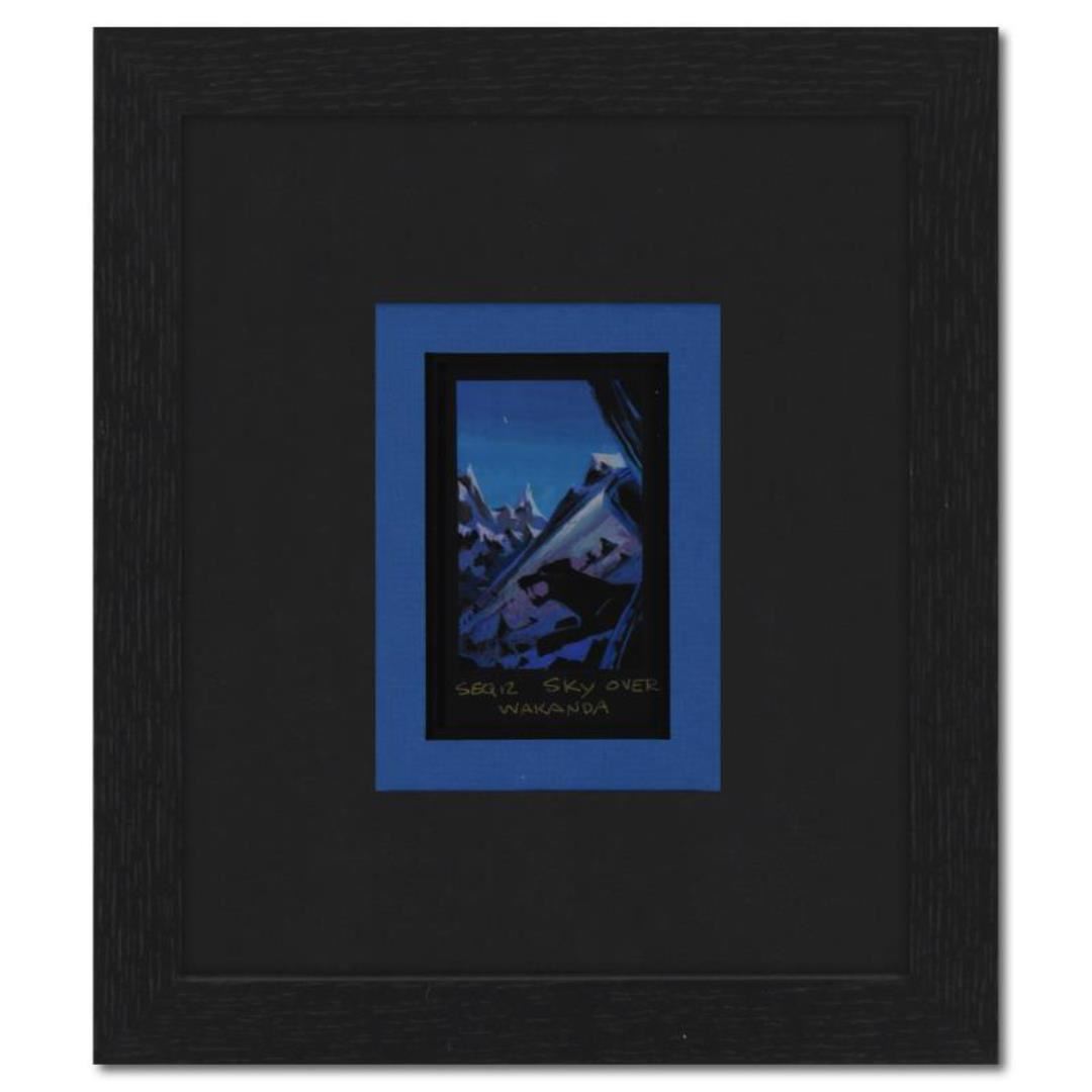 "Seq 12 Sky Over Wakanda" is an original story board production painting on paper from the Marvel animated series Avengers: Earth's Mightiest Heroes. This piece comes framed and includes Letter of Authenticity. Measures approx. 10.5" x 12.5" (frame), 4" x 5" (image).