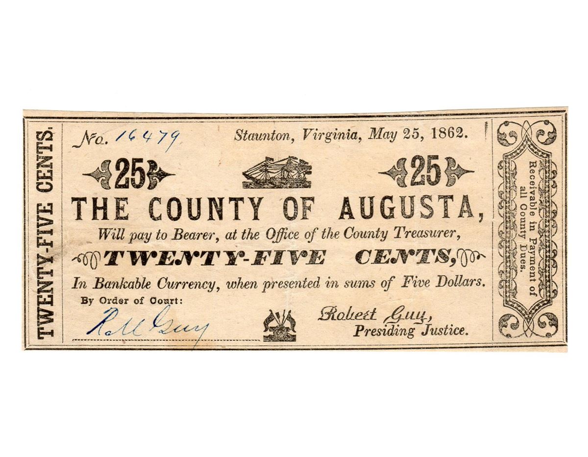 May 25, 1862 Twenty-Five Cents The County of Augusta Note