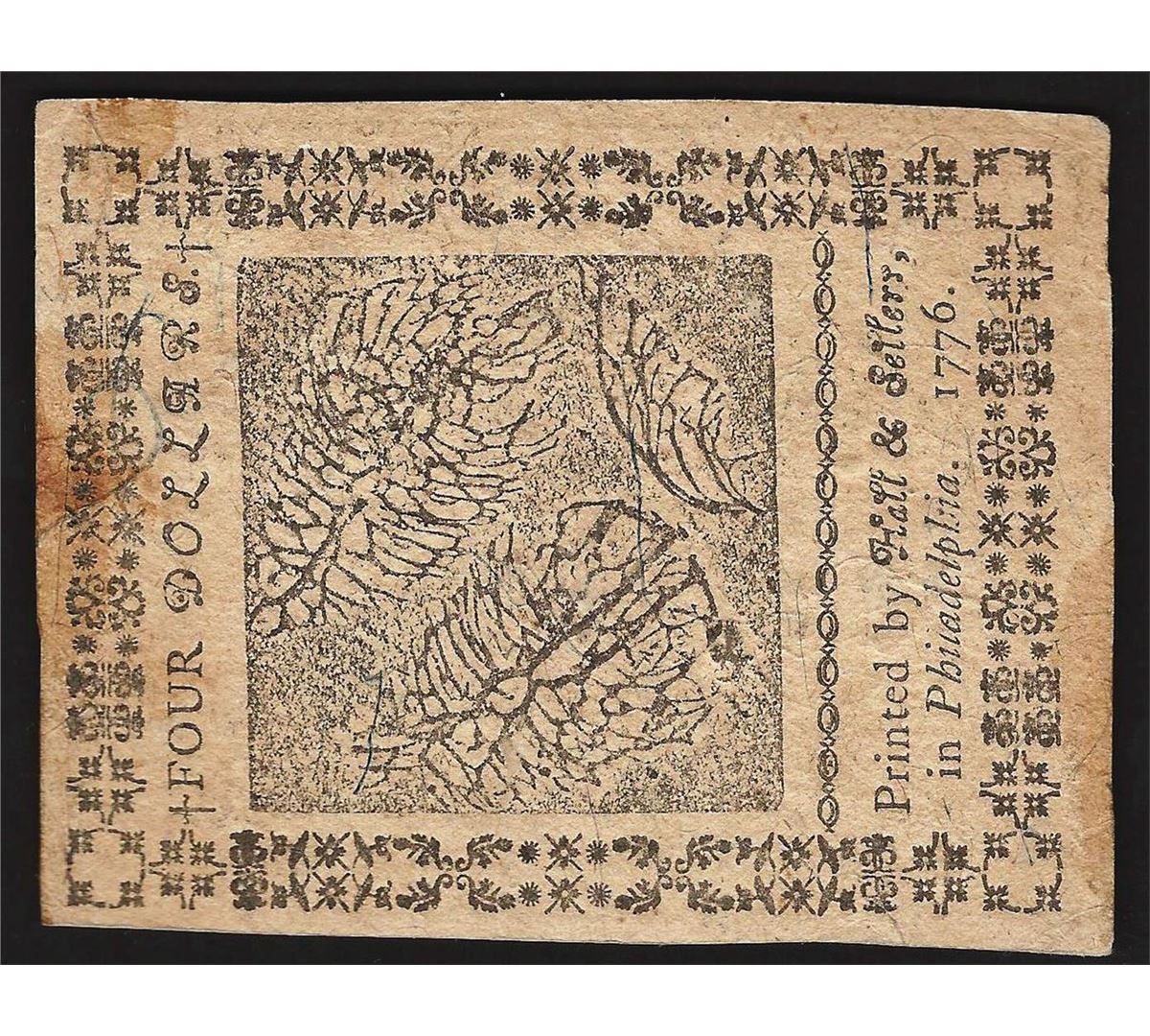May 9, 1776 $4 Philadelphia Spanish Milled Colonial Currency Note