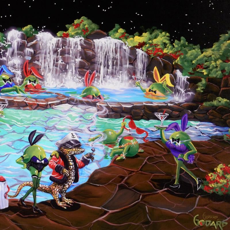 "Olive Bunnies" is a limited edition giclee on canvas, numbered and bears Godard's authorized signature. This piece comes framed. Includes Letter of Authenticity. Measures approx. 46" x 30" (frame), 42" x 26" (image).