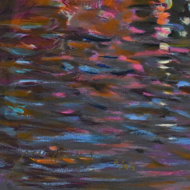 "Gondolier" is a limited edition serigraph on canvas by Ming Feng, numbered 3/95 and hand signed by the artist. Includes Letter of Authenticity. Measures approx. 30" x 24" (image).