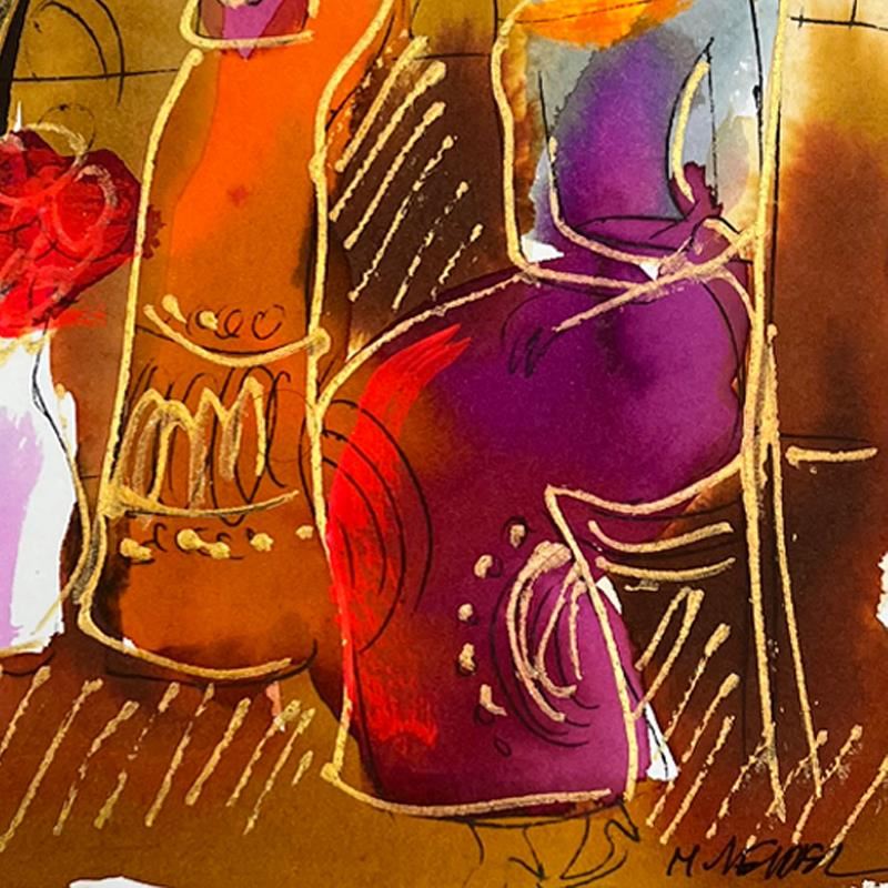 This is an original mixed media watercolor painting on paper by Moshe Leider. Hand signed by the artist, this piece comes custom framed and includes a Letter of Authenticity. Measures approximately 15" x 13.5" (frame), 8" x 6.5" (image).