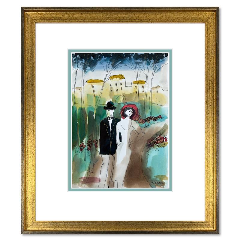 This is an original mixed media watercolor painting on paper by Moshe Leider. Hand signed by the artist, this piece comes custom framed and includes a Letter of Authenticity. Measures approximately 18.5" x 16" (frame), 12" x 8" (image).