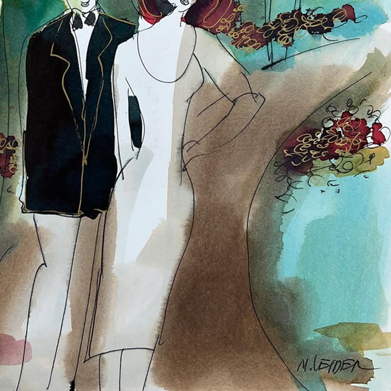This is an original mixed media watercolor painting on paper by Moshe Leider. Hand signed by the artist, this piece comes custom framed and includes a Letter of Authenticity. Measures approximately 18.5" x 16" (frame), 12" x 8" (image).