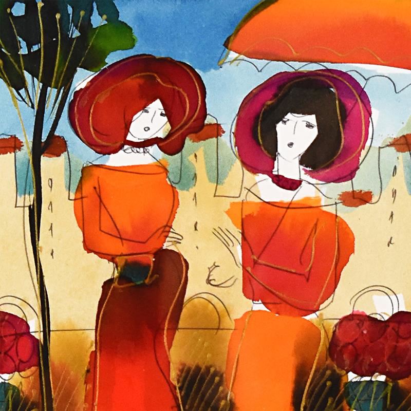 This is an original mixed media watercolor painting on paper by Moshe Leider, hand signed by the artist. This piece comes custom framed. Includes Letter of Authenticity. Measures approx. 15.5" x 17" (frame), 7" x 9" (image).
