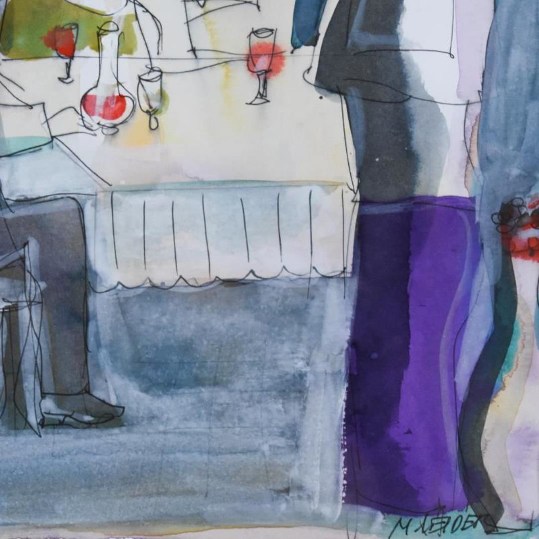 This is an original mixed media watercolor painting on paper by Moshe Leider, hand signed by the artist. This piece comes custom framed. Includes Letter of Authenticity. Measures approx. 18" x 22" (frame), 8" x 11.5" (image).