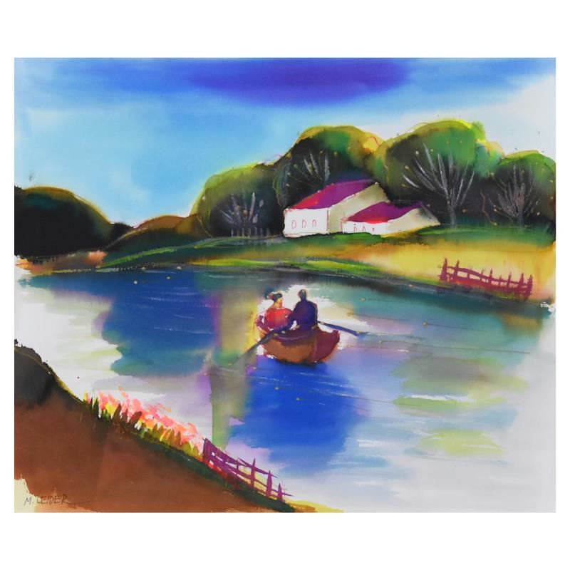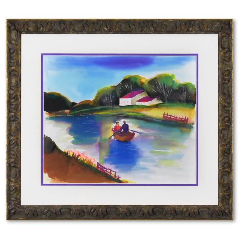 This is an original mixed media watercolor painting on paper by Moshe Leider, hand signed by the artist. This piece comes custom framed. Includes Letter of Authenticity. Measures approx. 23" x 20.5" (frame), 16" x 13" (image).