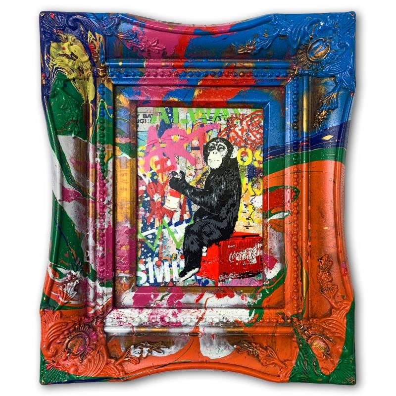 "Everyday Life" is a original mixed media on board by Mr. Brainwash, hand signed by the artist. This piece is also signed inverso and bears the thumbprint of the artist. This piece comes framed with a hand painted custom framed. Includes Certificate of Authenticity. Measures approx. 10.5" x 12.5" (frame), 4.5" x 6.5" (image).