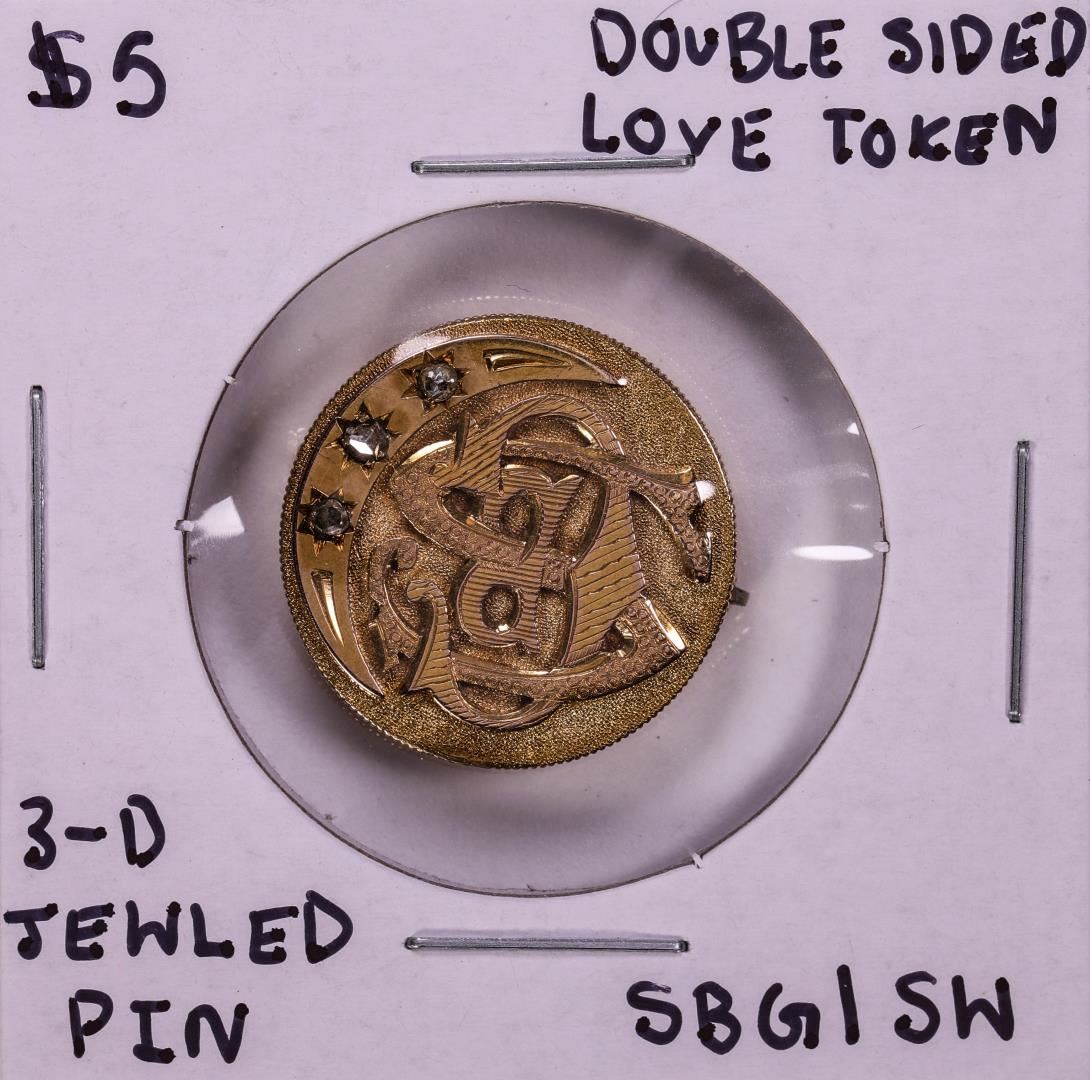 One ND $5 Double Sided Love Token 3 Diamond Jeweled Pin "SBG" | "SW" ????.