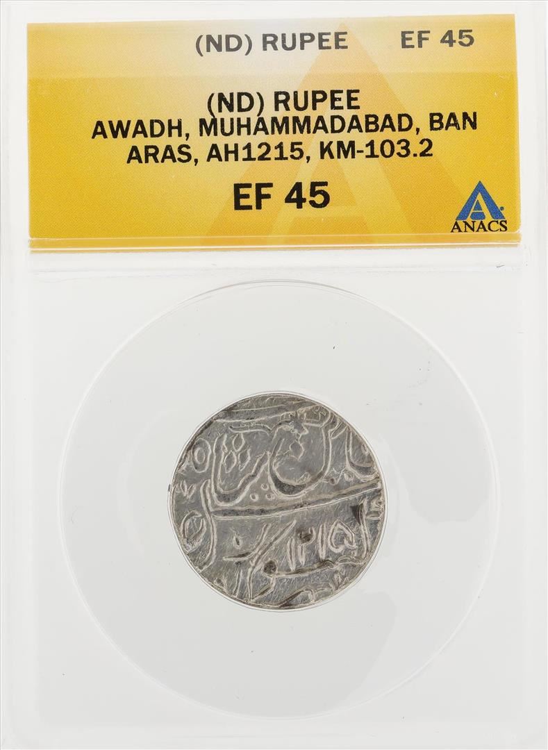 ND Rupee Awadh Muhammadabad Ban Aras AH1215 KM103.2 Coin ANACS EF45