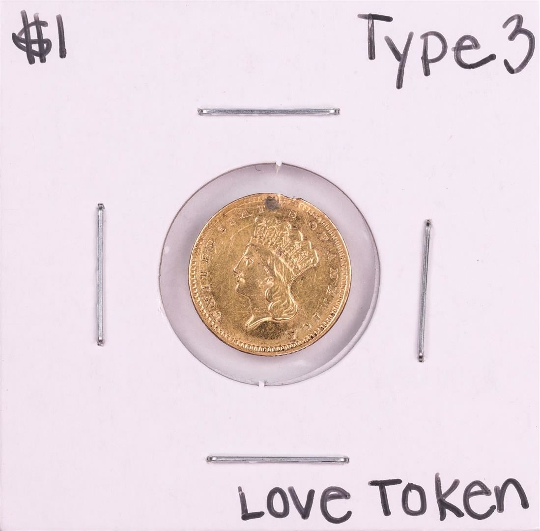 One ND Type 3 $1 Indian Princess Head Gold Dollar Love Token Coin.