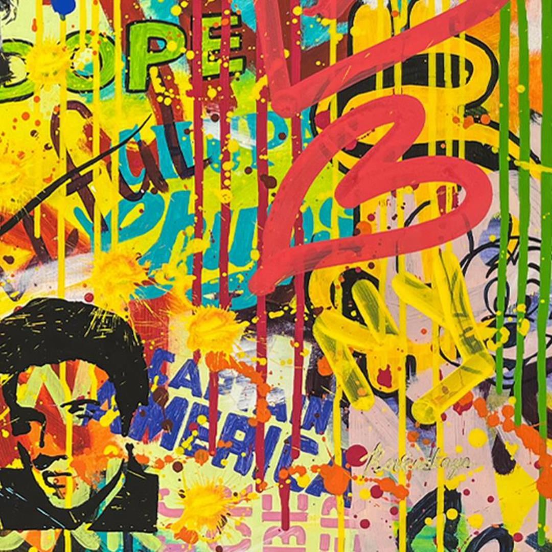 "Dali's Mustache" is a one-of-a-kind mixed media on deckle edge paper by Nastya Rovenskaya; hand signed by the artist. This piece comes custom framed and includes letter of authenticity. Measures approximately 30.5" x 36" (framed), 24.5" x 30" (image).