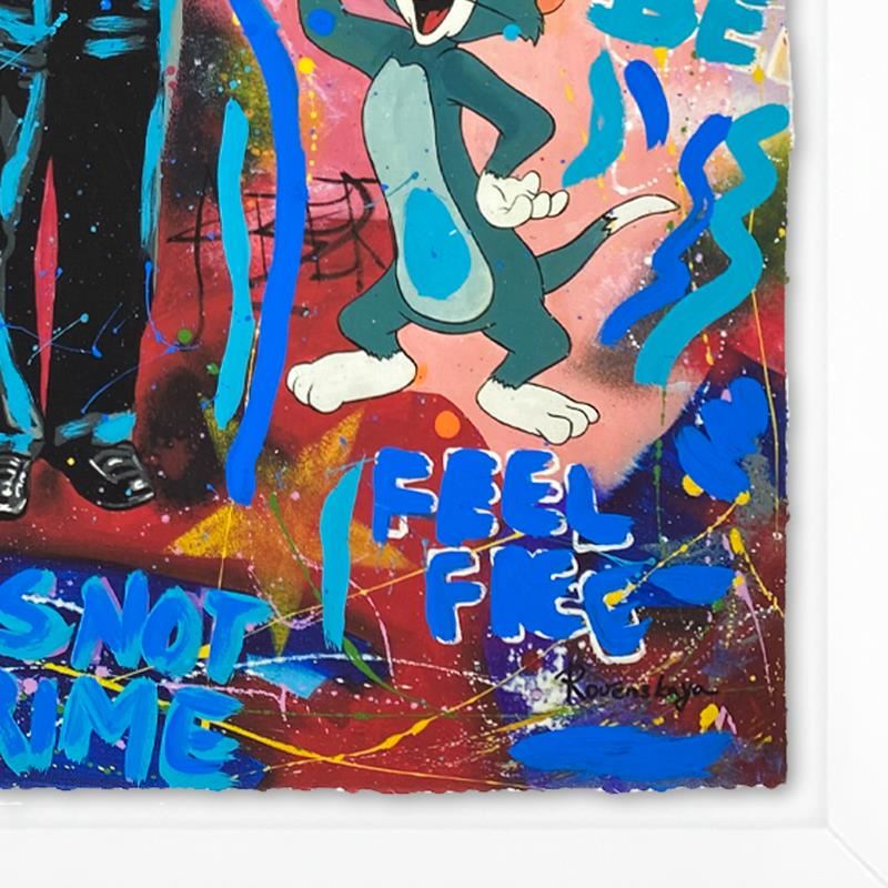 "Einstein's Placard" is a one-of-a-kind mixed media on deckle edge paper by Nastya Rovenskaya, Hand signed by the artist. This piece comes floating in a custom frame. Includes Letter of Authenticity. Measures approximately 34" x 27" (framed), 30" x 23" (image).