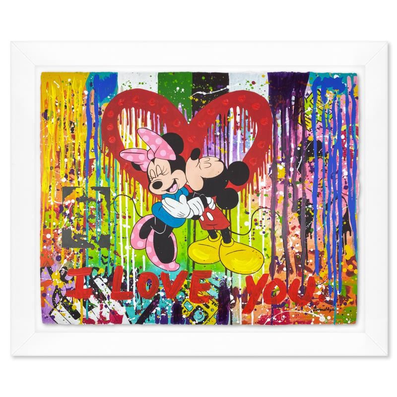"In Love" is a one-of-a-kind mixed media on deckle edge paper by Nastya Rovenskaya, Hand signed by the artist. This piece comes floating in a custom frame. Includes Letter of Authenticity. Measures approximately 28" x 34" (framed), 24" x 30" (image).