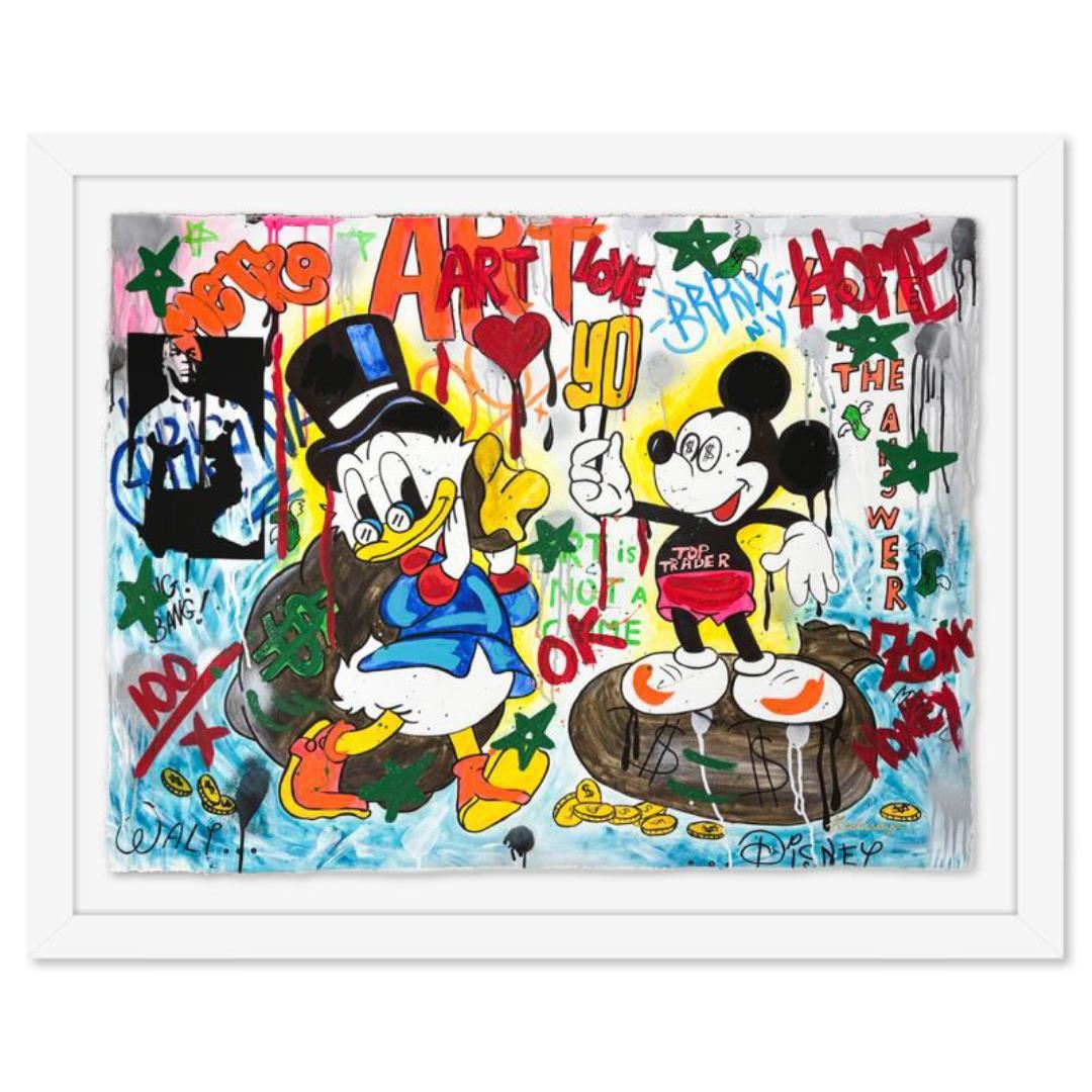 "It's All About Money" is a one-of-a-kind mixed media on deckle edge paper by Nastya Rovenskaya; hand signed by the artist. This piece comes custom framed and includes letter of authenticity. Measures approximately 36" x 46" (framed), 30" x 40" (image).