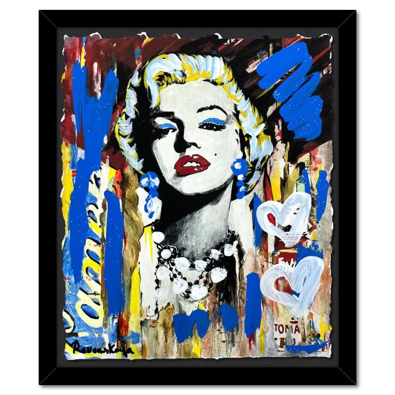 "Marilyn Monroe II" is a one-of-a-kind mixed media on deckle edge paper by Nastya Rovenskaya; hand signed by the artist. This piece comes custom framed and includes letter of authenticity. Measures approximately 16" x 14.5" (framed), 10" x 8.5" (image).
