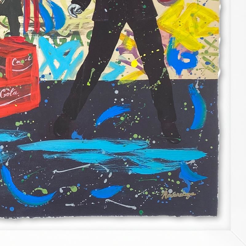 "Marilyn and Elvis" is a one-of-a-kind mixed media on deckle edge paper by Nastya Rovenskaya, Hand signed by the artist. This piece comes floating in a custom frame. Includes Letter of Authenticity. Measures approximately 27" x 34" (framed), 23" x 30" (image).