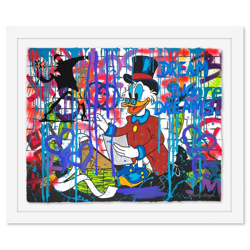 "Sales Report" is a one-of-a-kind mixed media on deckle edge paper by Nastya Rovenskaya; hand signed by the artist. This piece comes custom framed and includes letter of authenticity. Measures approximately 30" x 36.5" (framed), 24" x 30.5" (image).