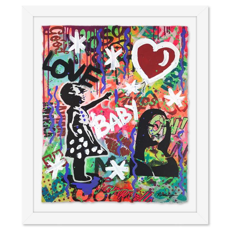 "The Ballon" is a one-of-a-kind mixed media on deckle edge paper by Nastya Rovenskaya; hand signed by the artist. This piece comes custom framed and includes letter of authenticity. Measures approximately 30" x 26" (framed), 24" x 20" (image).
