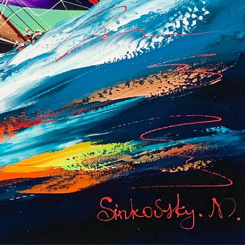 This is an original acrylic painting on canvas by Natalia Sinkovsky, hand signed by the artist. Includes Letter of Authenticity. Measures approximately 20" x 24" (image).