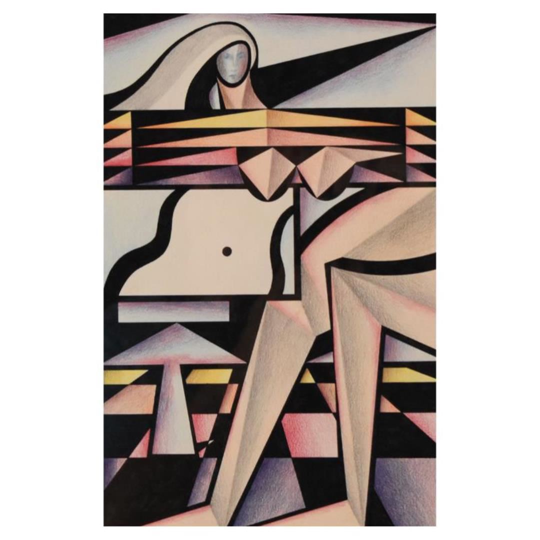 This is an original drawing on paper by Neal Doty (1941-2016), hand signed by the artist. This piece comes custom framed. Includes Letter of Authenticity. Measures approx. 17" x 20.5" (frame), 8.5" x 12" (image).