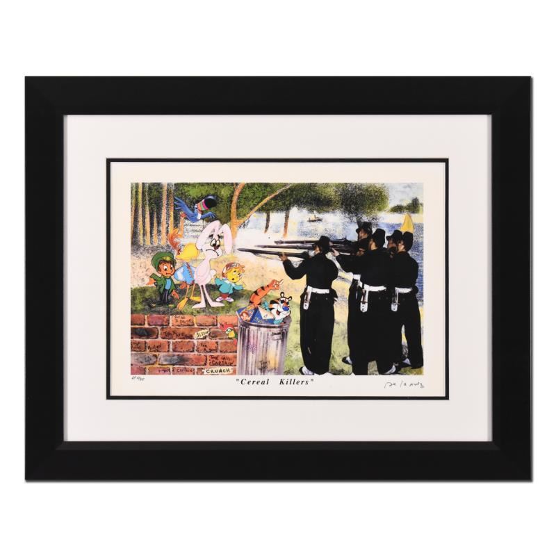 "Cereal Killers" is a limited edition artist proof on paper by Nelson De La Nuez, numbered and hand signed by the artist. This piece comes custom framed. Includes Letter of Authenticity. Measures approx. 26" x 21" (frame), 15" x 10" (image).