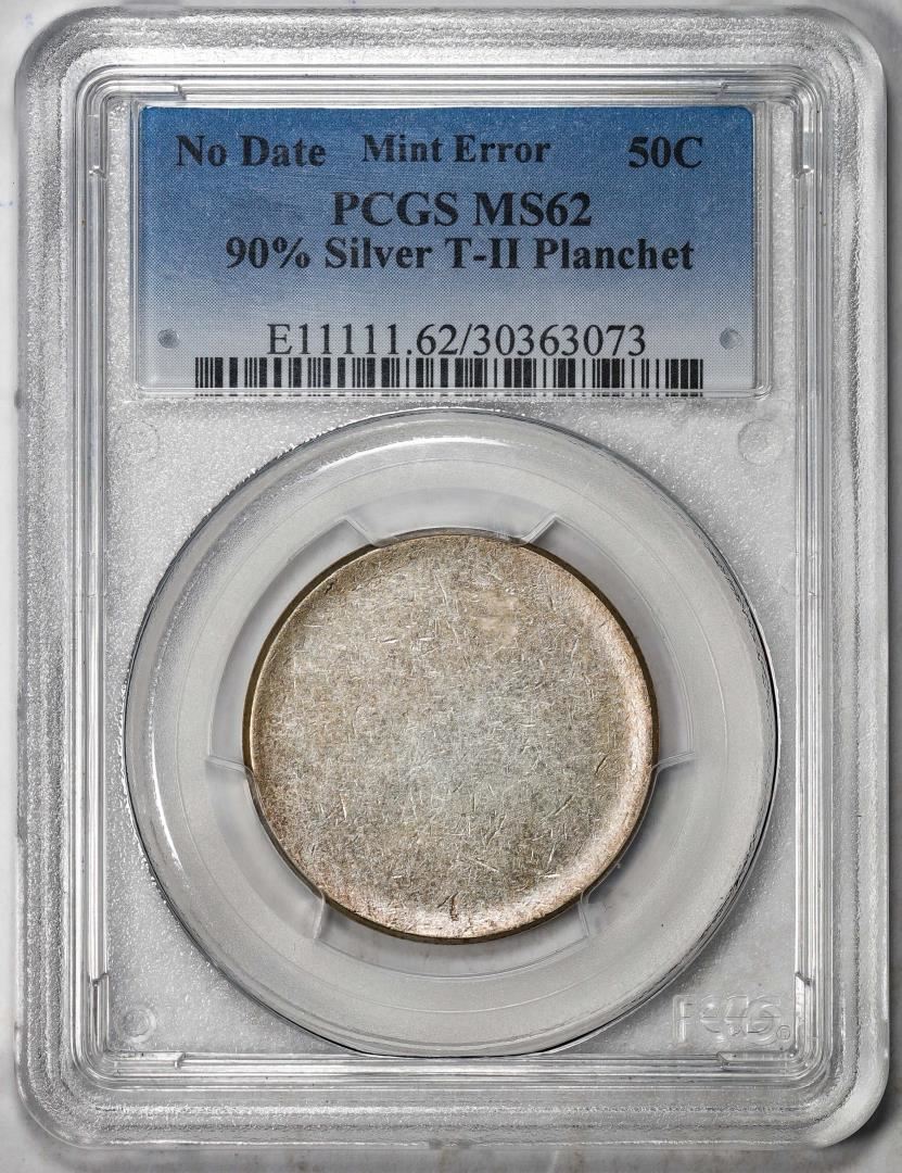 No Date Liberty Half Dollar Coin PCGS Error MS62 90% Silver T-II Planchet