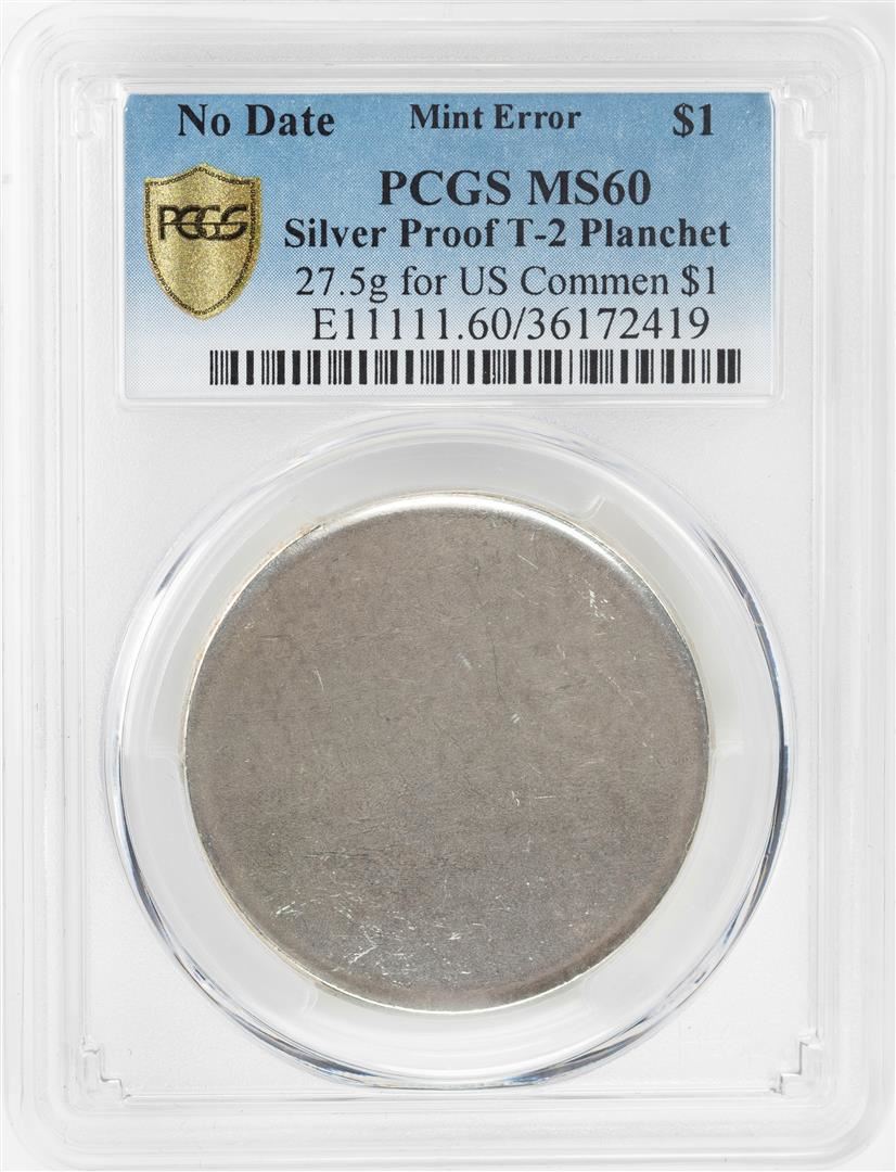 No Date Proof $1 Mint Error T-2 Silver Planchet PCGS MS60