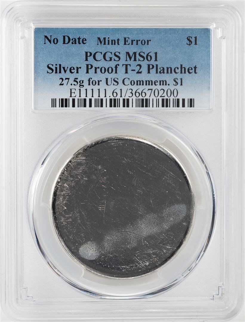 No Date Proof $1 Mint Error T-2 Silver Planchet PCGS MS61