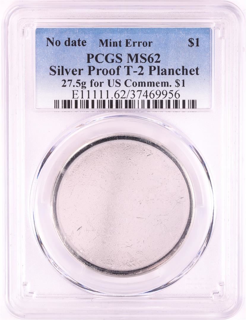 No Date Proof $1 Mint Error T-2 Silver Planchet PCGS MS62