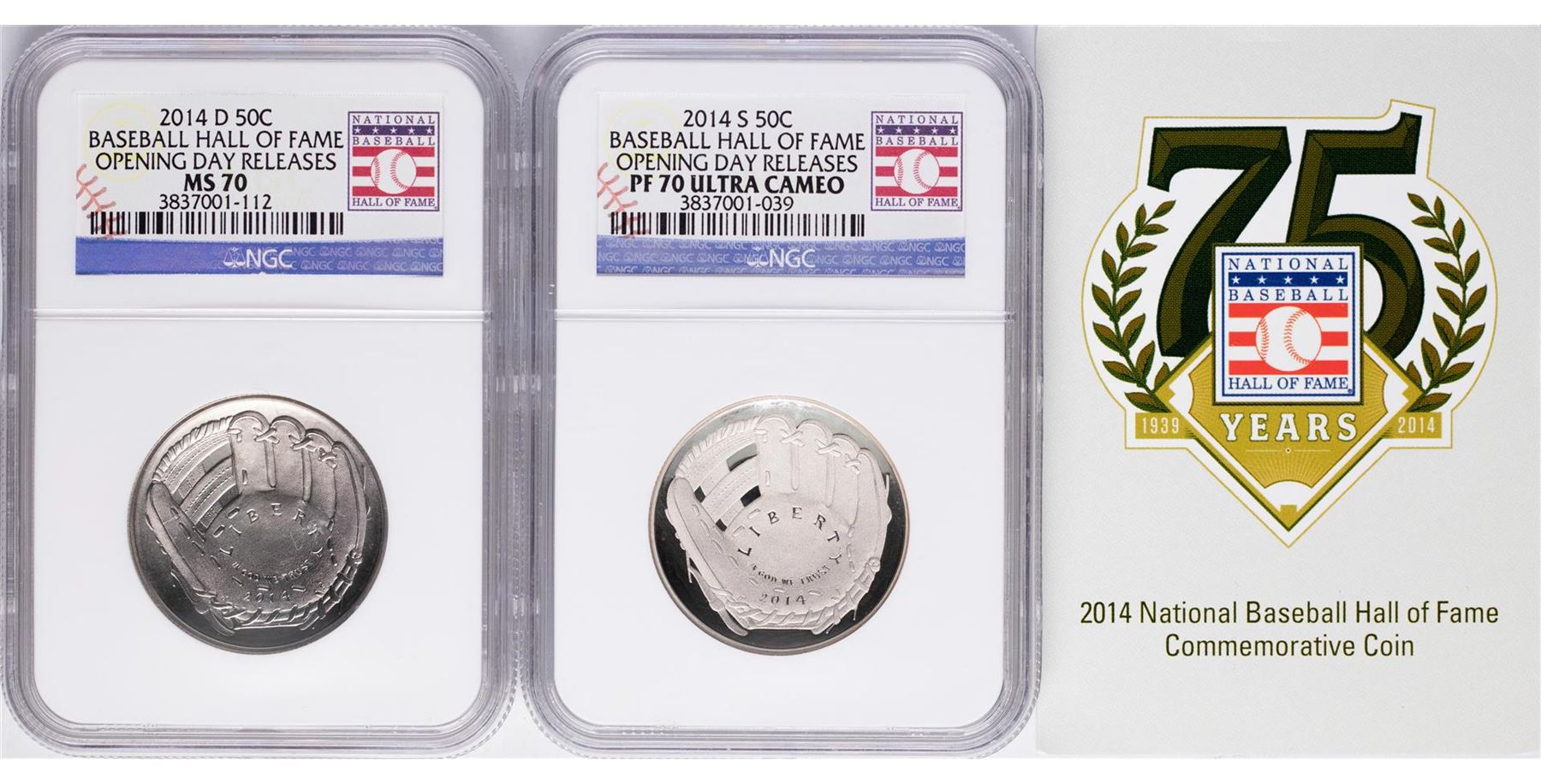 Opening Day 2014-D & 2014-S Baseball Hall of Fame Half Dollar Coins NGC MS70/PF70