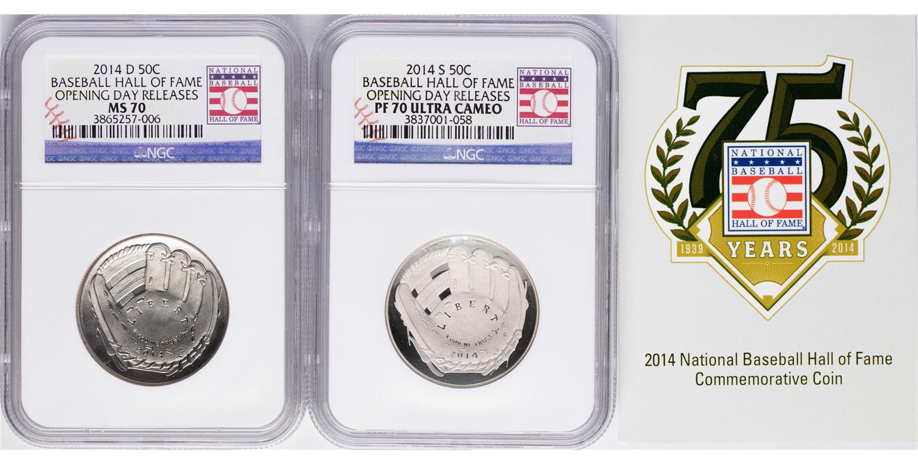 One Opening Day 2014-D & 2014-S Baseball Hall of Fame Half Dollar Coins NGC MS70/PF70. NGC Certified.