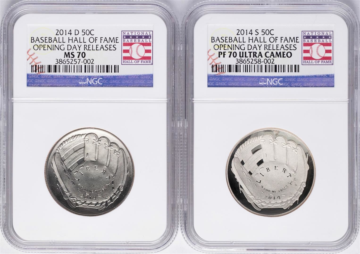 One Opening Day 2014-D & 2014-S Baseball Hall of Fame Half Dollar Coins NGC MS70/PF70. NGC Certified.