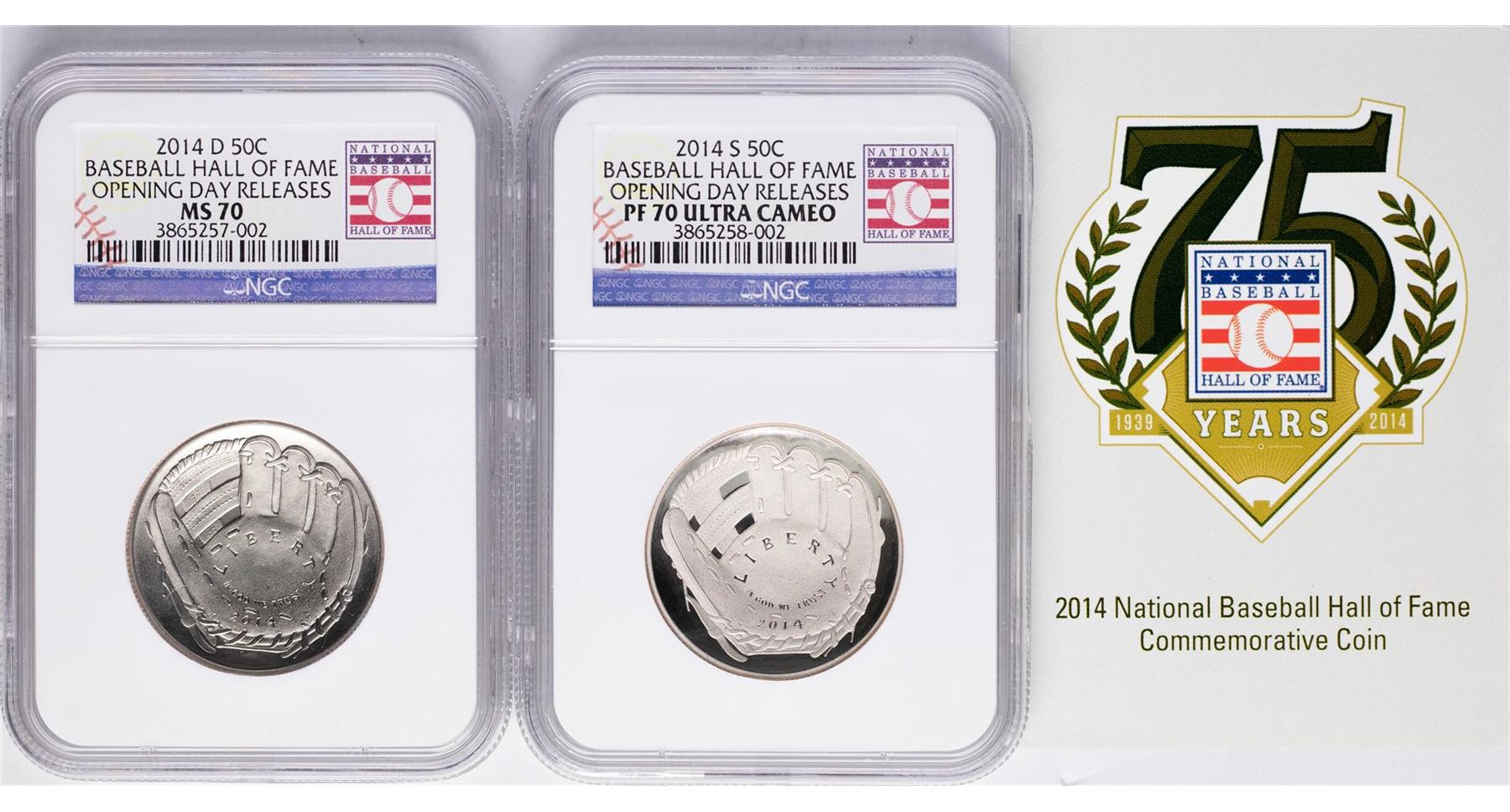 One Opening Day 2014-D & 2014-S Baseball Hall of Fame Half Dollar Coins NGC MS70/PF70. NGC Certified.
