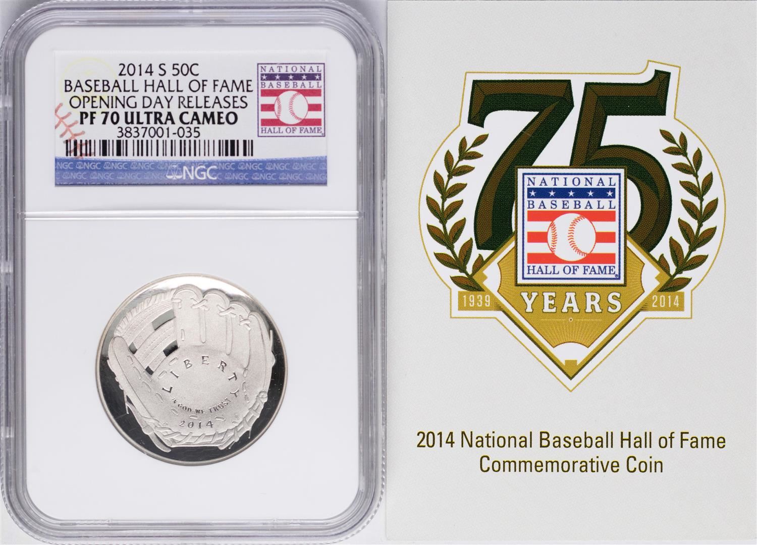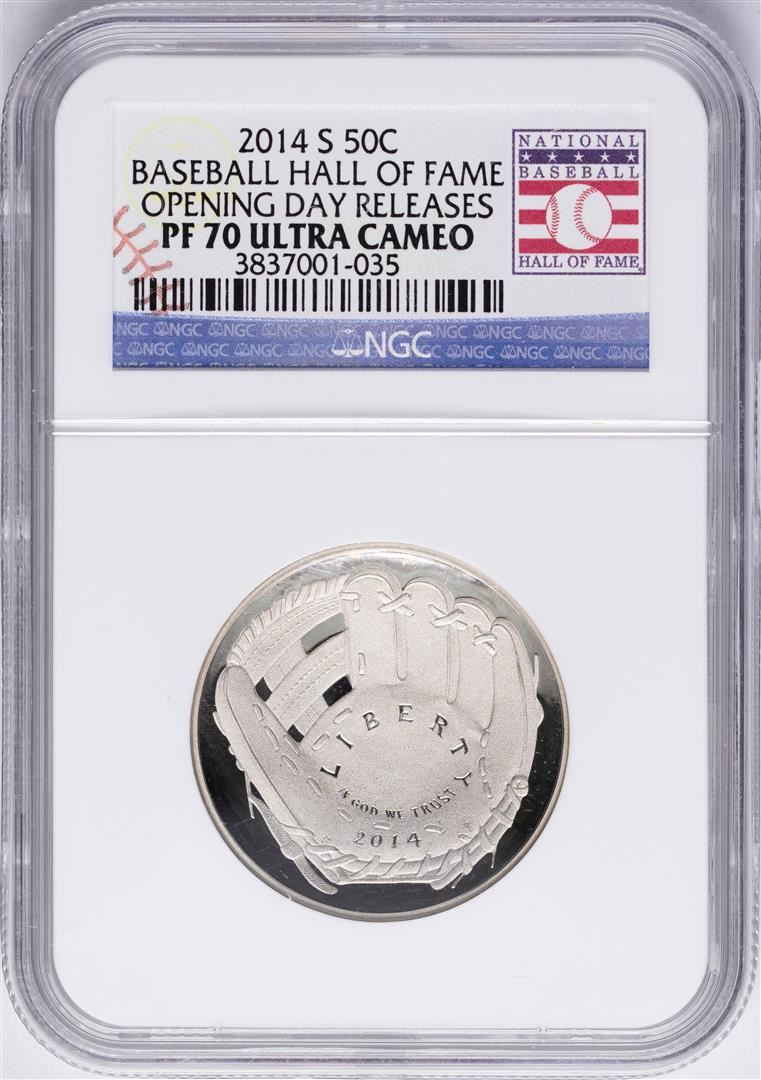 One Opening Day 2014-S Proof Baseball Hall of Fame Half Dollar Coin NGC PF70. NGC Certified.