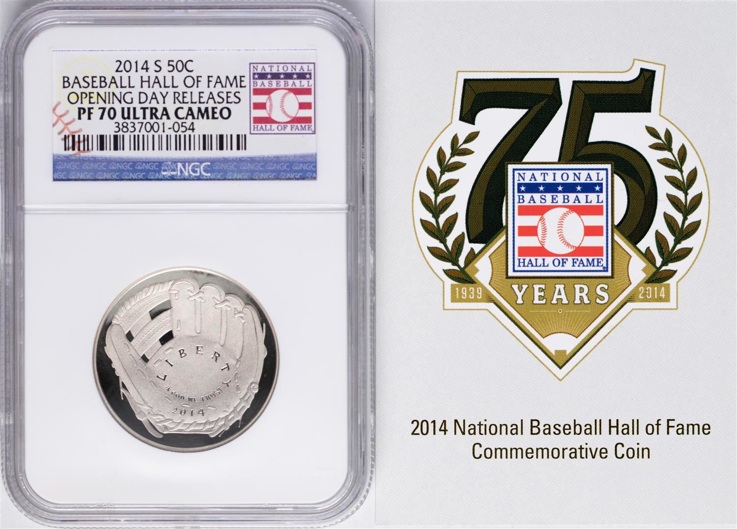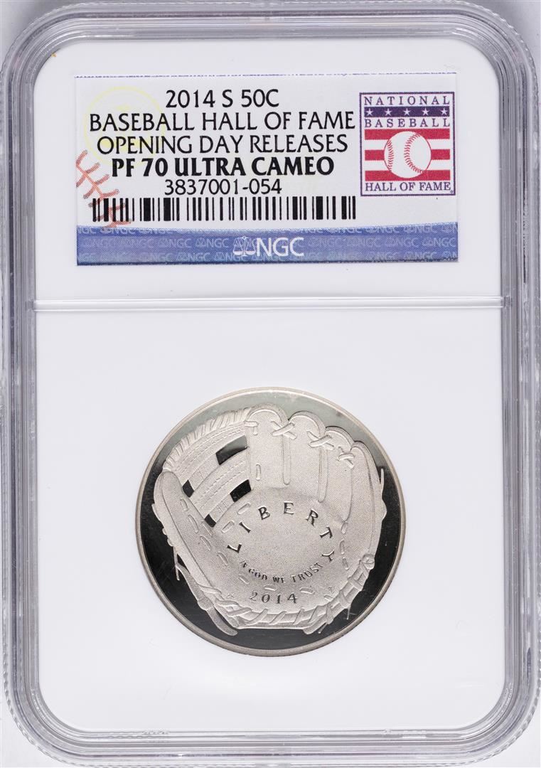 One Opening Day 2014-S Proof Baseball Hall of Fame Half Dollar Coin NGC PF70. NGC Certified.