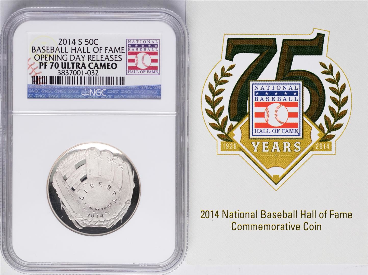 One Opening Day 2014-S Proof Baseball Hall of Fame Half Dollar Coin NGC PF70. NGC Certified.