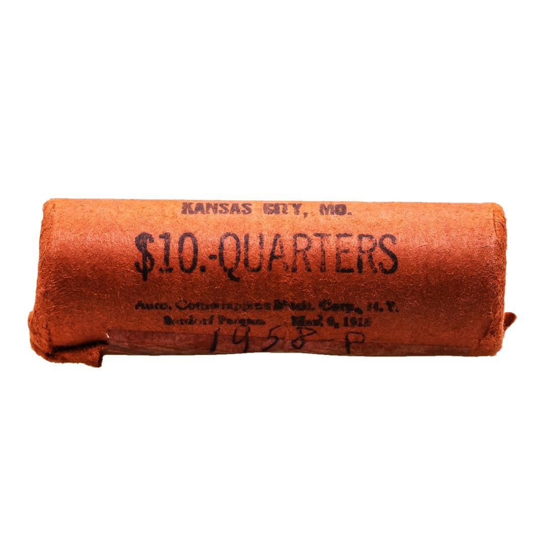 One Original Bank Roll of (40) Brilliant Uncirculated 1958 Washington Quarter Coins.